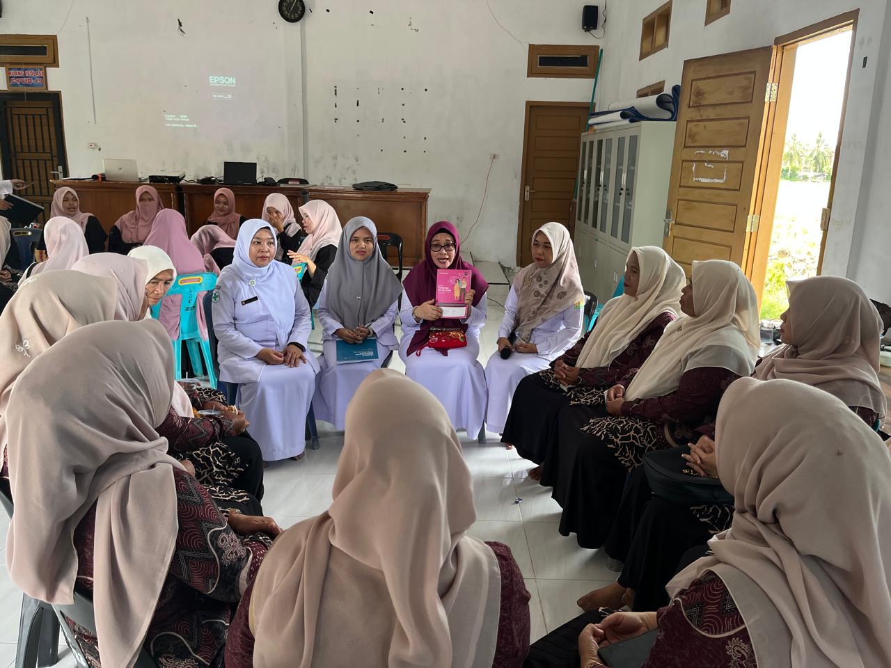 Kepala Puskesmas Kuta Malaka, dr. Eli Diana, memberikan pembekalan kepada bidan gampong dan kader kesehatan saat kegiatan pembinaan dan sosialisasi Integrasi Layanan Primer (ILP) di wilayah kerja Puskesmas Kuta Malaka, Aceh Besar, Selasa (31/03/2026). FOTO/ ZUL FAZLI