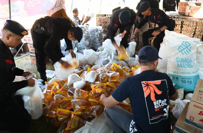 Kabarnanggroe.com, Kota Jantho – Dalam rangka menekan inflasi harga pangan, Pemerintah Kabupaten (Pemkab) Aceh Besar dan Satuan Brimob Polda Aceh, menggelar Bazar Pangan Murah bekerjasama dengan Perum Bulog Kanwil Aceh, di Halaman Masjid Jamik Ladong, Kabupaten Aceh Besar, Selasa (2/4/2024).
