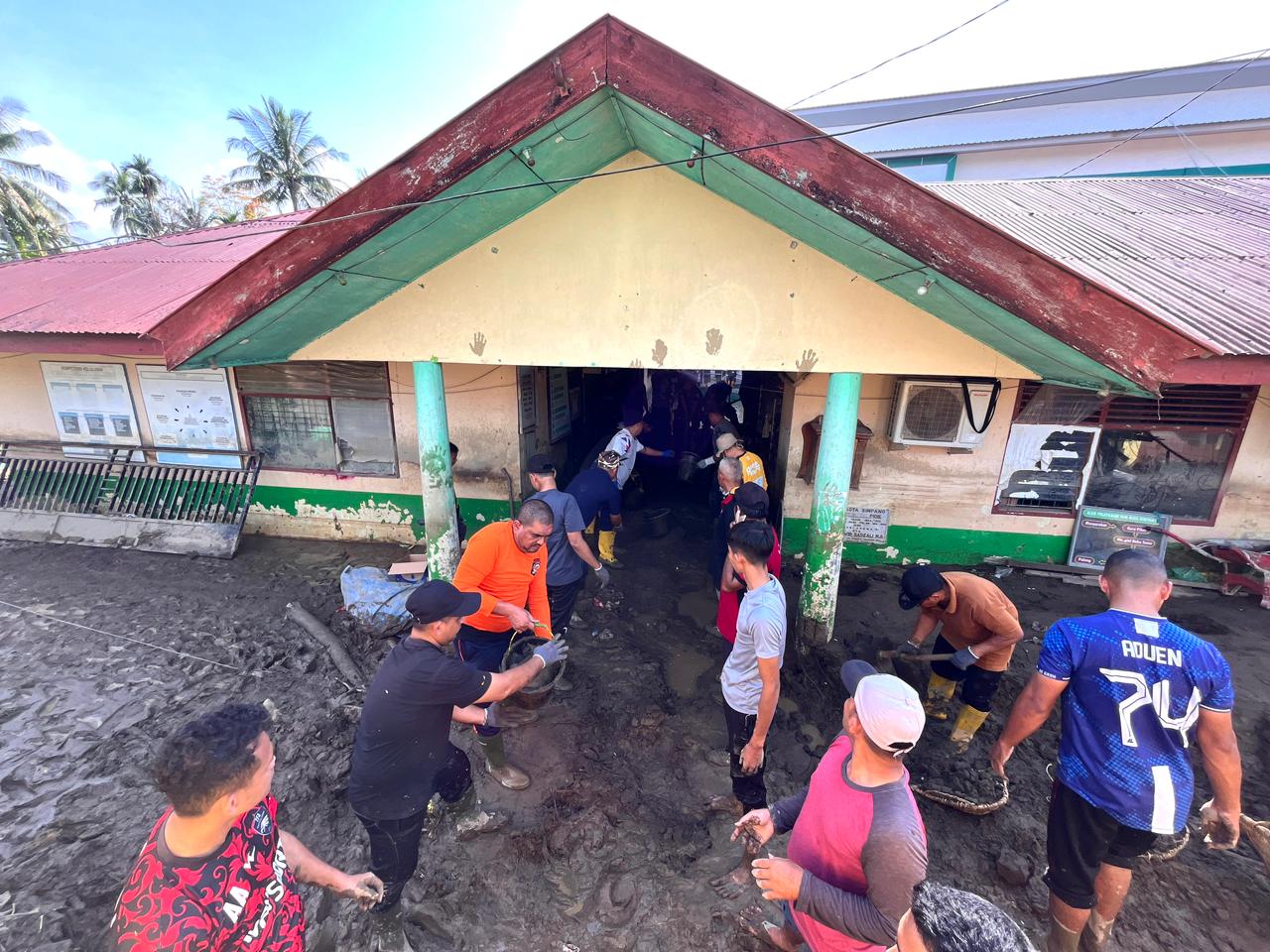 Kerja bakti dilakukan dengan membersihkan lumpur dari ruang kelas, teras, serta lingkungan madrasah. Selain itu, ASN juga membantu memindahkan sisa-sisa fasilitas yang tersisa dan rusak akibat terjangan banjir.