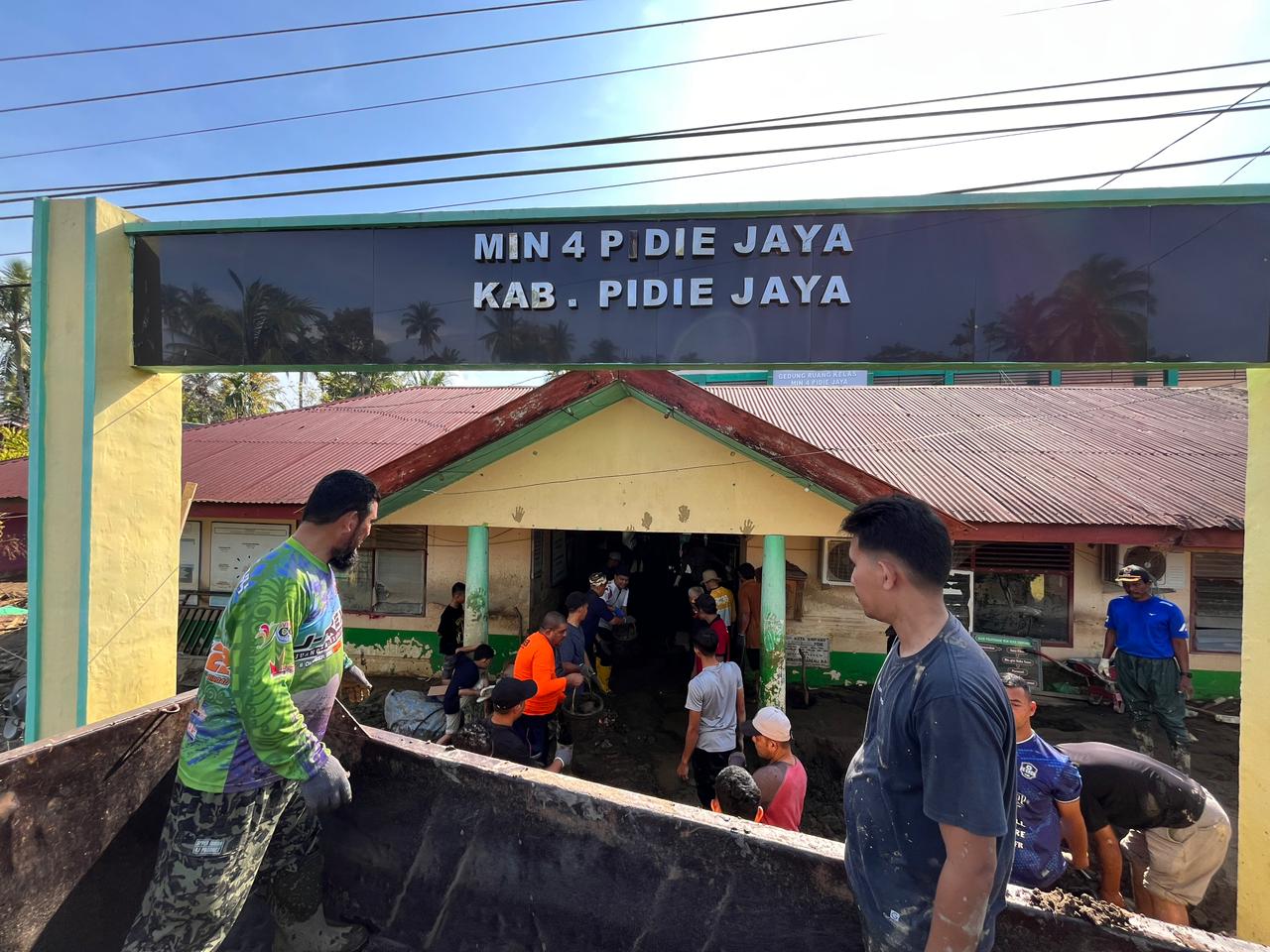 Kerja bakti itu dipimpin Kepala Kantor Kemenag Aceh Besar H Saifuddin SE, turun langsung bersama para ASN membersihkan ruang-ruang belajar dan fasilitas madrasah yang tertimbun tanah serta lumpur.
