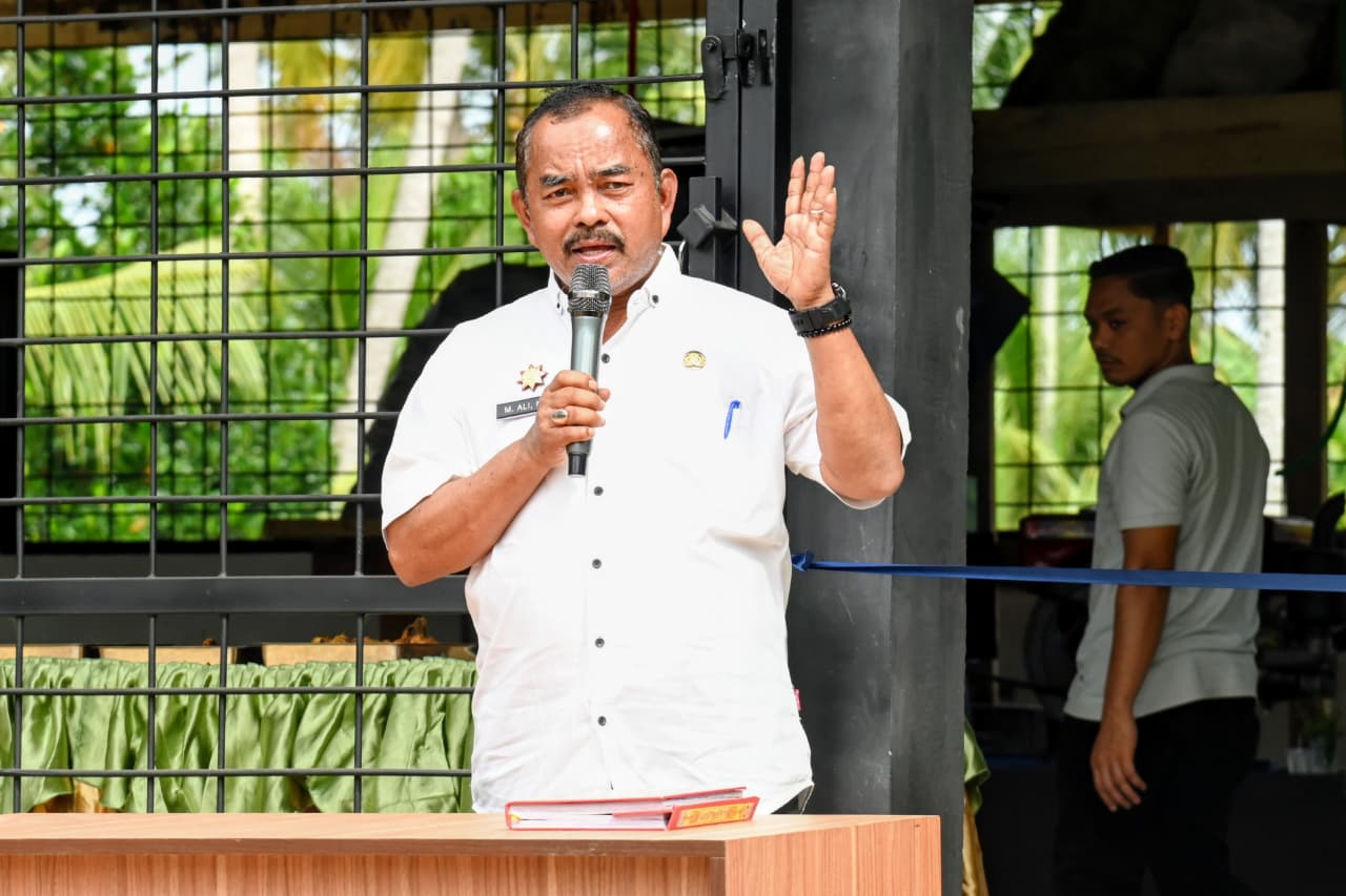 Asisten II Sekda Aceh Besar M Ali SSos MSi, menyampaikan sambutan dan arahan pada Peresmian Tempat Pengelolaan Sampah di Dusun Lam Daya, Desa Lam Asan, Kecamatan Kuta Baro, Aceh Besar, Rabu (04/02/2026). FOTO/MC ACEH BESAR