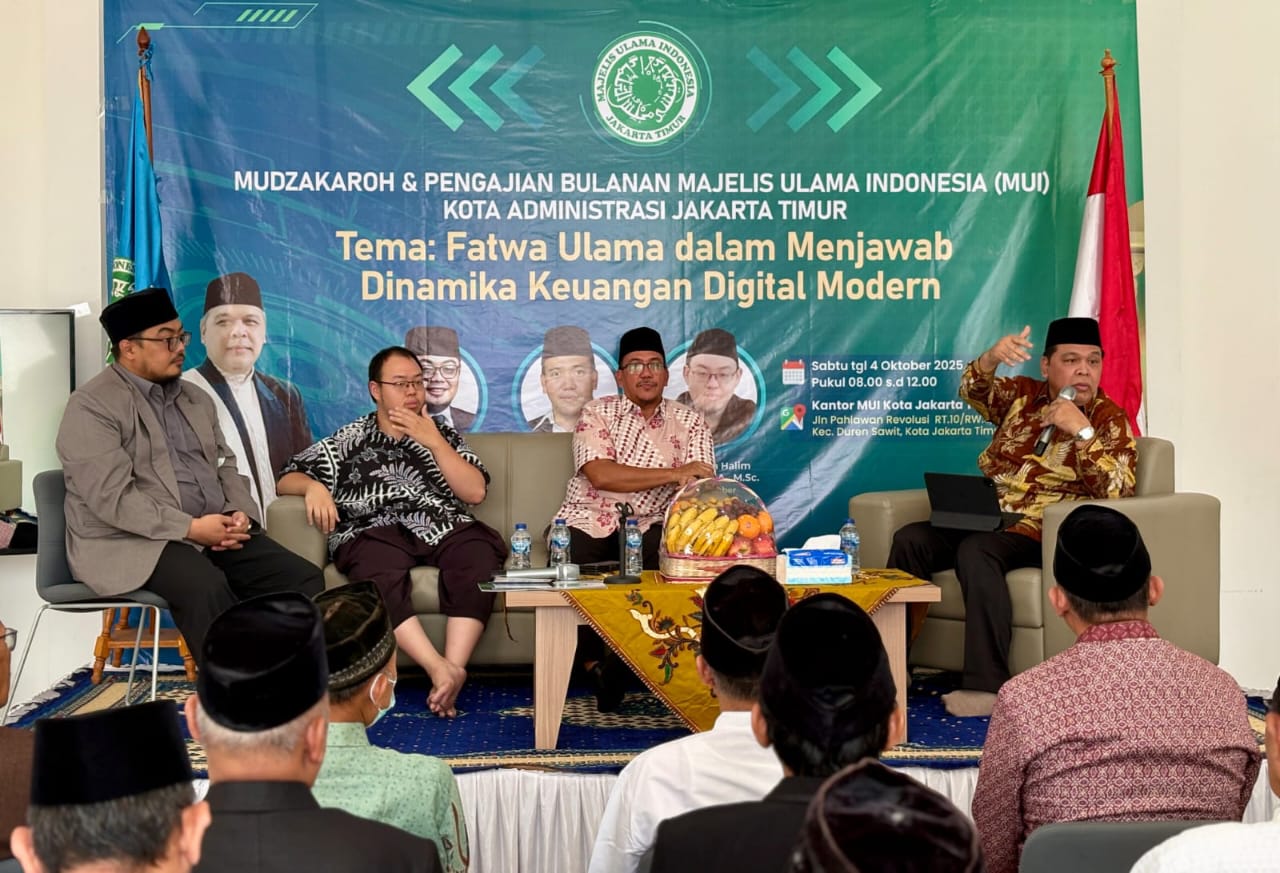 Kabarnanggroe.com, Jakarta — Majelis Ulama Indonesia (MUI) Kota Administrasi Jakarta Timur menyelenggarakan Muzakarah dan Pengajian Bulanan dengan tema Fatwa Ulama dalam Menjawab Dinamika Keuangan Digital Modern, di Kantor MUI Jakarta Timur pada Sabtu (4/10/2025).
