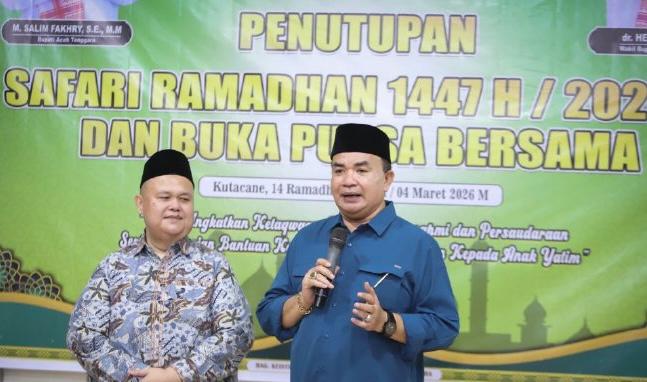 Kabarnanggroe.com, Kutacane – Safari Ramadhan 1447 Hijriah yang diselenggarakan oleh Pemerintah Kabupaten Aceh Tenggara resmi ditutup oleh Wakil Bupati Heri Al Hilal, berlangsung di Rumah Dinas Wakil Bupati Agara, Rabu (4/3/2026). Ditandai dengan penyaluran bantuan untuk masjid serta santunan kepada 2.547 anak yatim sebagai wujud kepedulian dan penguatan kebersamaan di bulan suci Ramadhan.