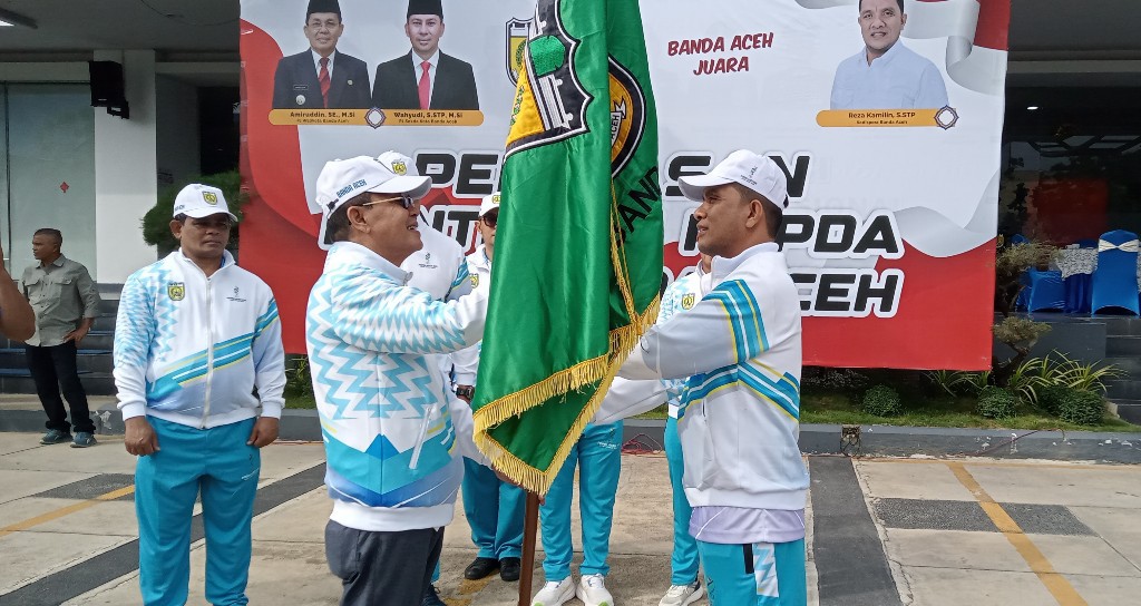 Kontingen Banda Aceh yang berkekuatan 225 atlet, pelatih dan official dilepas Penjabat (Pj) Walikota Banda Aceh, Amiruddin, SE, M.Si untuk mengikuti Popda di Balaikota Banda Aceh, Jumat (5/7/2024), dengan mengusung target juara umum.