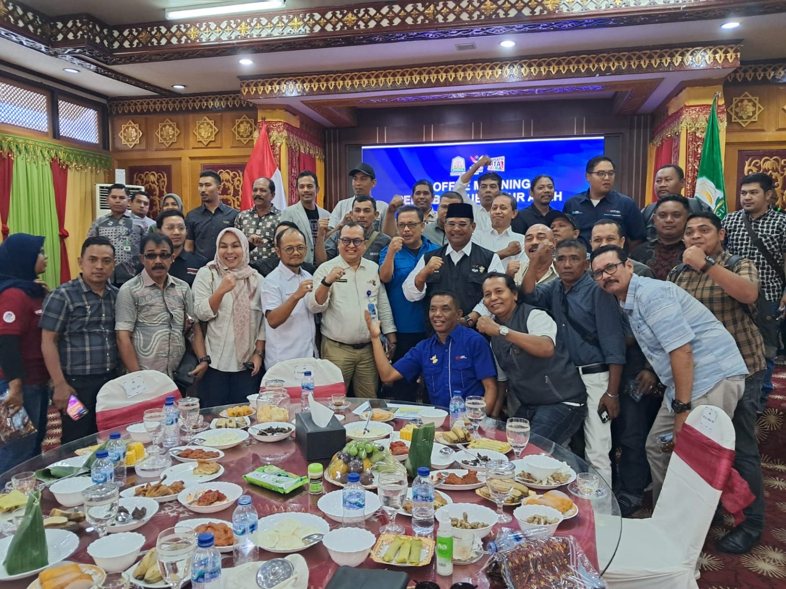 Pj Gubernur Aceh, Dr H Safrizal ZA MSi dan Pj Sekda Aceh Azwardi AP MSi dalam sesi foto bersama dengan awak media pada acara Coffee Morning di Restoran Meuligoe Gubernur Aceh, Banda Aceh, Kamis (05/08/2024). (Foto: Ask/Media Pos Aceh)