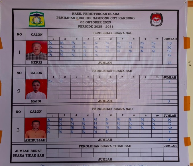 “Dengan kemenangan tersebut, Amirullah ditetapkan sebagai keuchik terpilih Cot Kareung periode 2025-2031.