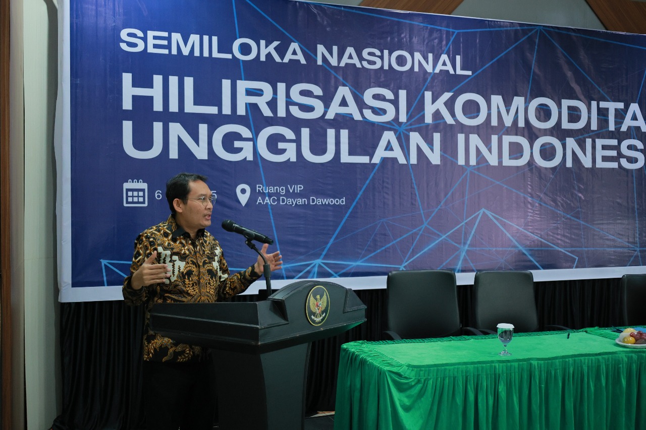 Menurutnya, semiloka nasional mengenai hilirisasi komoditas unggulan Indonesia merupakan forum diskusi dan pembelajaran yang bertujuan untuk membahas dan mengoptimalkan upaya hilirisasi komoditas-komoditas unggulan nasional.
