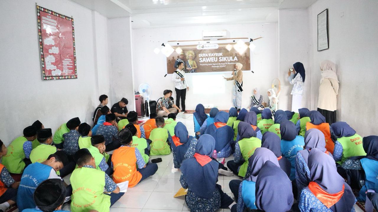 Sementara itu Duta Wisata Rizqa Ilmina mengatakan program Saweu Sikula yng diinisiasi oleh Duta Rayeuk itu bertujuan untuk mendorong peserta didik agar gemar berbahasa Aceh dan mencintai adat budaya yang ada di Aceh Besar. “Kita berharap melalui program. Ini dapat mengedukasi peserta didik sejak dini untuk mencintai bahasa daerah dan menerapkannya pada kehidupan sehari-hari, khususnya hari kamis sebagai Hari Bahasa Aceh sebagimana ditetapkan Bupati Aceh Besar,” ujar Inong Duta Wisata Aceh Besar itu.