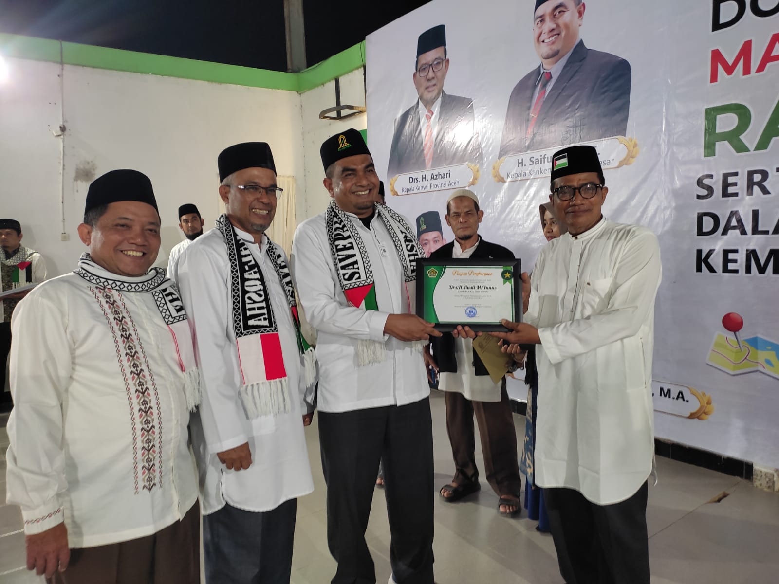 Acara yang di kemas dengan Doa bersama-sejuta puisi dan solidaritas untuk rakyat Palestina di liput dan di publikasikan oleh berbagai media lokal dan nasional. Pada malam yang penuh kenangan ini tercatat 140 orang ASN dan siswa madrasah mendapatkan piagam penghargaan yang di serahkan oleh Kepala Kantor Kementerian Agama Kabupaten Aceh Besar H Saifuddin SE di dampingi Kasubbag tata usaha H Khalid Wardana SAg MSi dan para kepala seksi yaitu H Akhyar MAg,H Nazaruddin SE, Jamaluddin SE, Suryadi SAg dan Az Zahri MH.