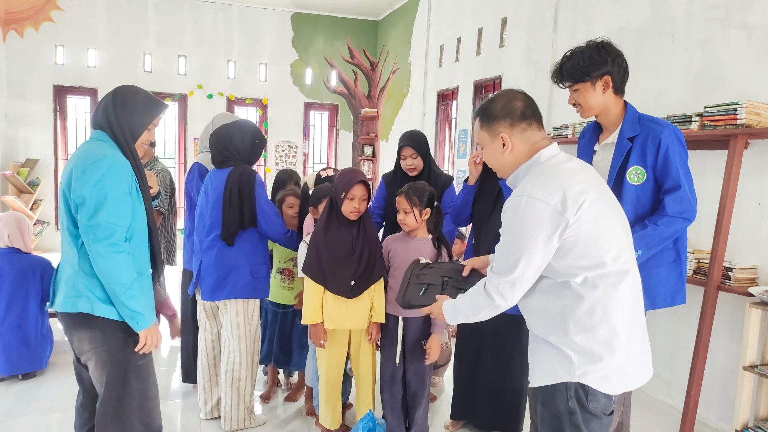 Selain pendampingan, tim Universitas Samudra juga menyalurkan bantuan pendukung berupa buku bacaan untuk perpustakaan desa, tas mengaji, serta buku dan alat tulis bagi anak-anak di Desa Alue Ie Puteh.
