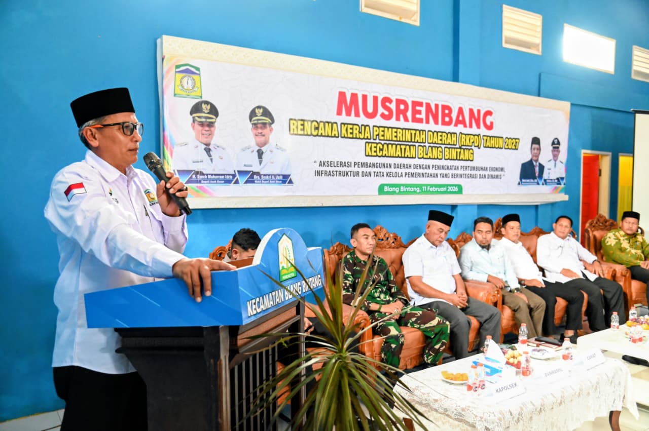 Kabarnanggroe.com, Kota Jantho — Bupati Aceh Besar diwakili Asisten III Sekretaris Daerah Kabupaten (Sekdakab) Aceh Besar Bidang Administrasi Umum, Abdullah, S.Sos., secara resmi membuka Musyawarah Perencanaan Pembangunan (Musrenbang) Kecamatan Blang Bintang dalam rangka penyusunan Rencana Kerja Pemerintah Daerah (RKPD) Kabupaten Aceh Besar Tahun 2027, di Gedung UDKP Kecamatan Blang Bintang, Rabu (11/2/2026).