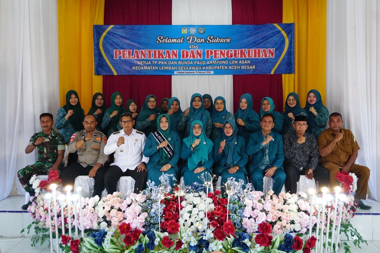 Kabarnanggroe.com, KOTA JANTHO — Ketua Tim Penggerak Pemberdayaan dan Kesejahteraan Keluarga (TP–PKK) Gampong Lon Asan, Kecamatan Lembah Seulawah resmi dilantik sekaligus dikukuhkan sebagai Bunda Pendidikan Anak Usia Dini (PAUD) dalam prosesi khidmat di Aula UDKP Kantor Camat Lembah Seulawah, Aceh Besar, Rabu (11/2/2026).