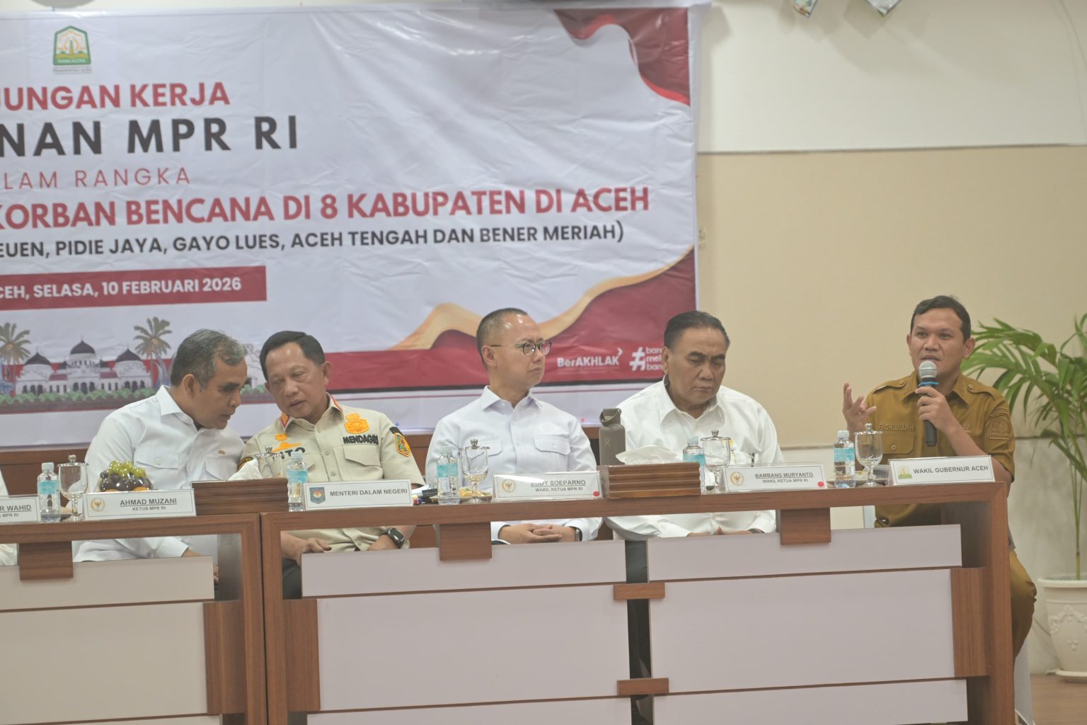 Kabarnanggroe.com, Banda Aceh — Wakil Gubernur Aceh Fadhlullah meminta percepatan penyaluran berbagai bantuan dan program pemulihan bagi korban banjir dan longsor saat menerima kunjungan pimpinan dan anggota MPR RI di Kantor Gubernur Aceh, Banda Aceh, Selasa (10/2/2026).