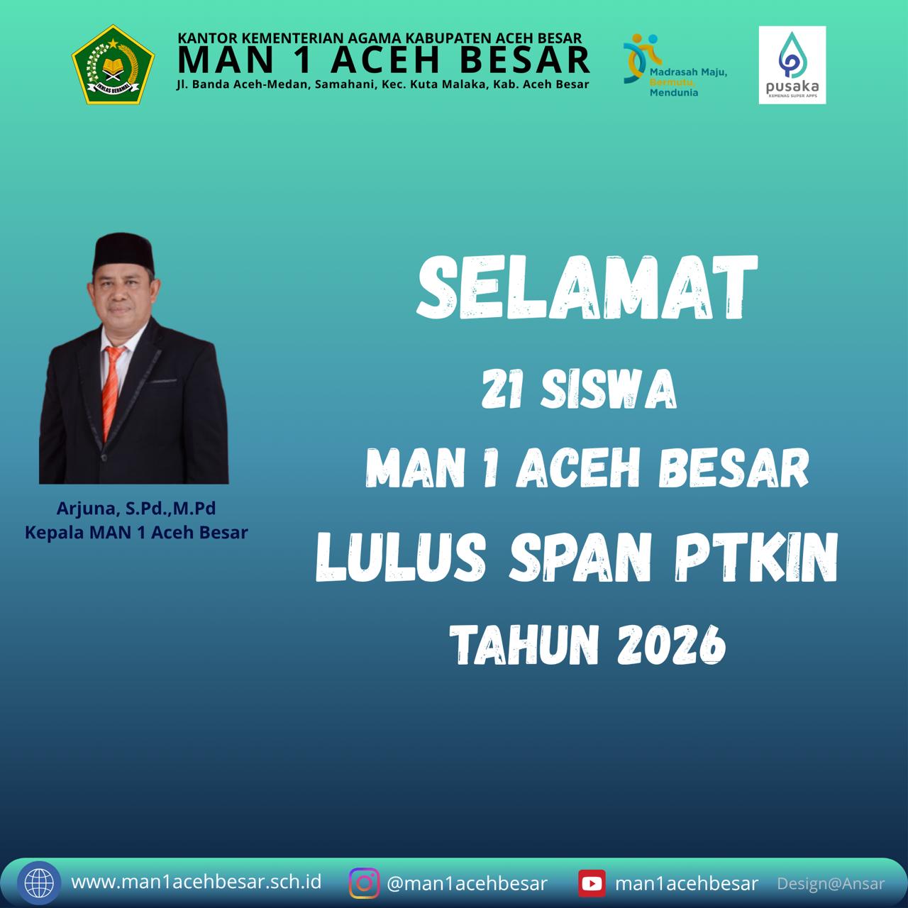 21 Siswa MAN 1 Aceh Besar Lulus SPAN PTKIN 2026