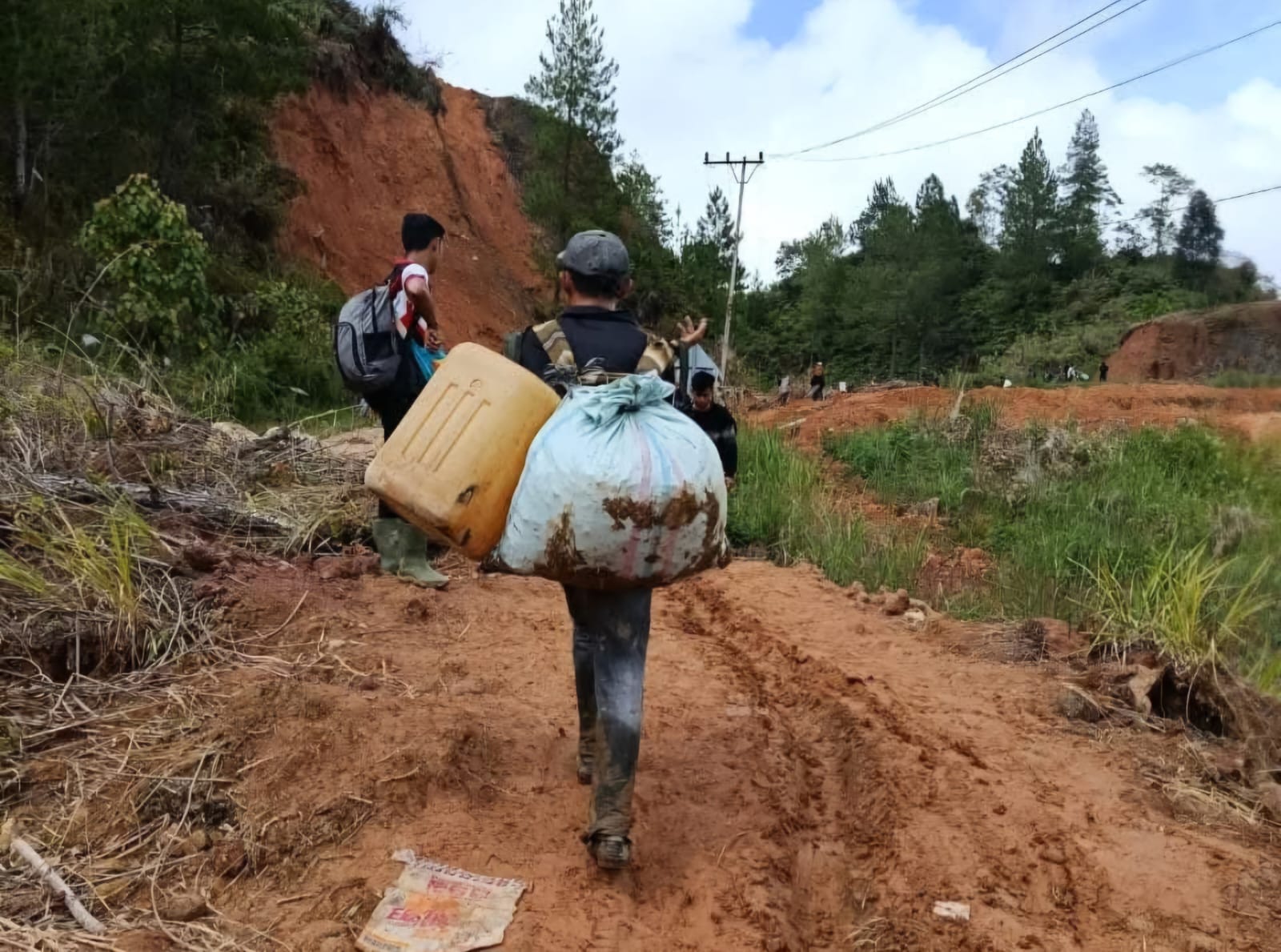 “Kami mesti berjalan menggendong beras, minyak, melewati longsoran karena stok logistik tidak ada lagi. Kalau akses jalan tidak dibuka, akan membuat kami kelaparan sangat panjang,” ujarnya dari ujung telepon yang jaringannya timbul-tenggelam.