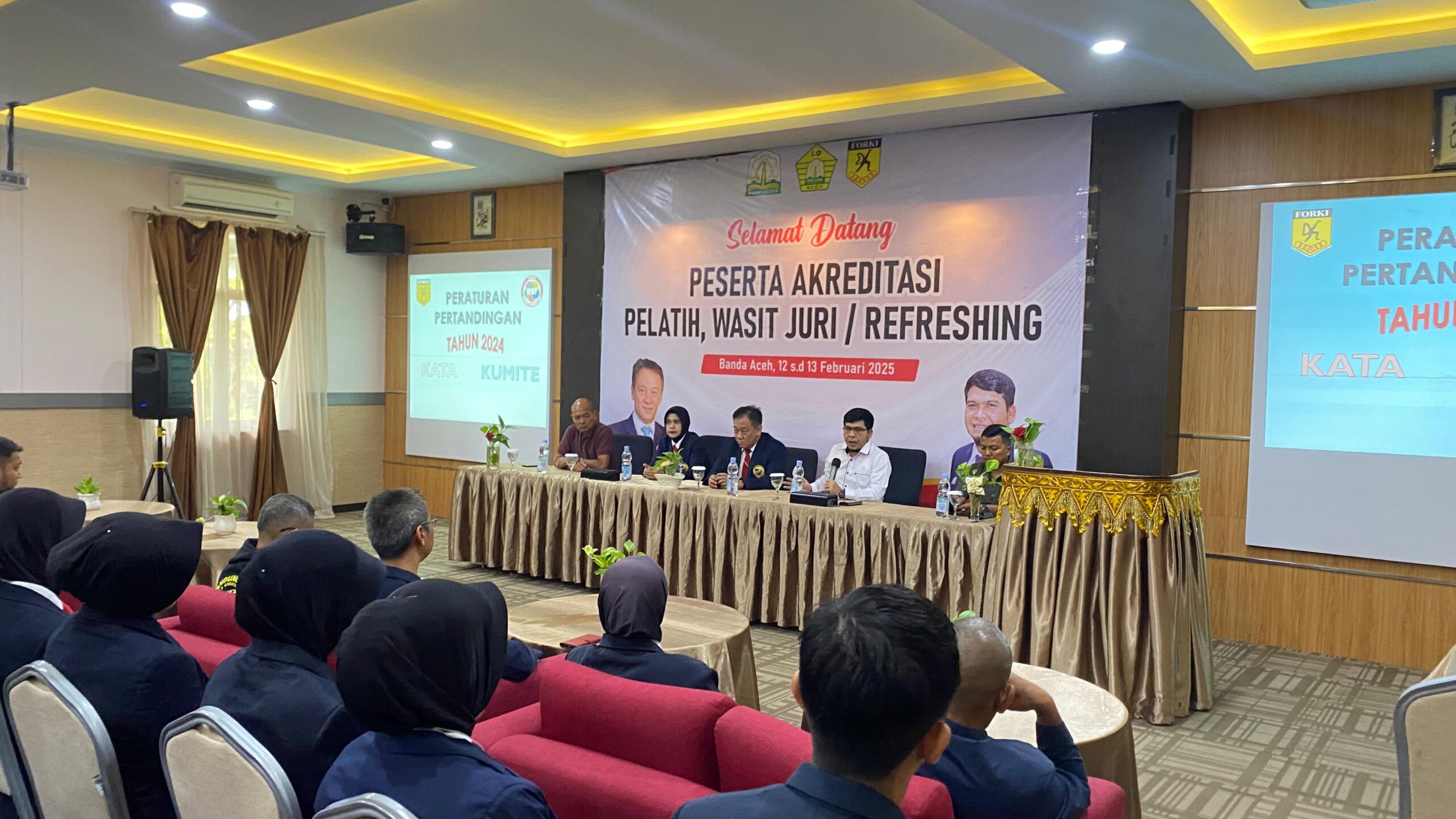 Kabarnanggroe.com, BANDA ACEH – Menjelang dilaksanakan Kejuaraan Daerah (Kejurda) Karate Aceh tahun 2025, Federasi Olah Raga Karate Indonesia (Forki) Provinsi Aceh mengadakan pelatihan wasit dan juri yang berlangsung di Hotel Jeumpa SMK 3 Lhong Raya Banda Aceh pada Rabu (12/2/2025).