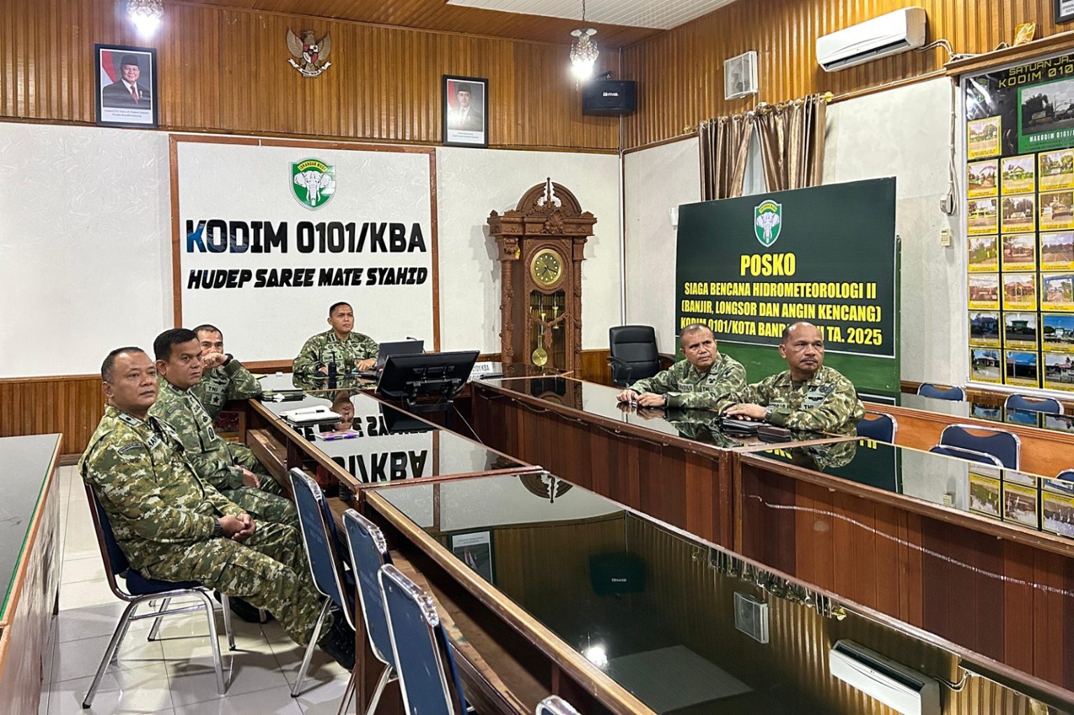 Bertempat di Ruang Assembly Hall Darmawangsa, Makodim 0101/KBA, Dandim yang didampingi oleh Kasdim 0101/KBA Letkol Inf Muhsin, S.Ag., M.A.P beserta seluruh jajaran Perwira Staf mengikuti jalannya rapat dengan khidmat. Rapim tahun ini mengusung tema “Mewujudkan Sishankamrata Menuju Indonesia Maju”, sebuah visi besar untuk memperkuat sistem pertahanan keamanan rakyat semesta di tengah dinamika zaman.
