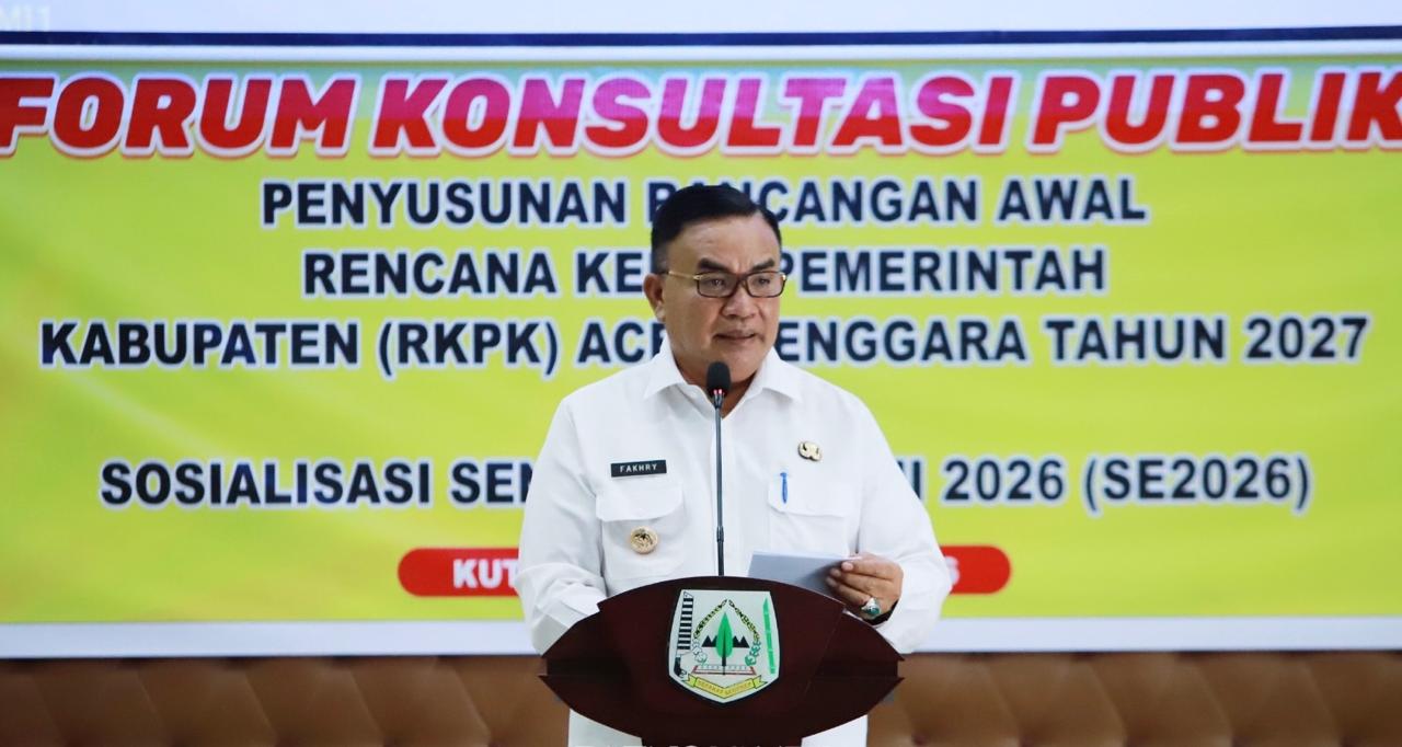 Kabarnanggroe.com, Kutacane – Pemerintah Kabupaten (Pemkab) Aceh Tenggara menggelar Rapat Konsultasi Publik Rancangan Awal Rencana Kerja (RKPK) Tahun 2027 sekaligus Sosialisasi Sensus Ekonomi (SE) 2026, di Oproom Setdakab Aceh Tenggara, Rabu (11/2/2026).