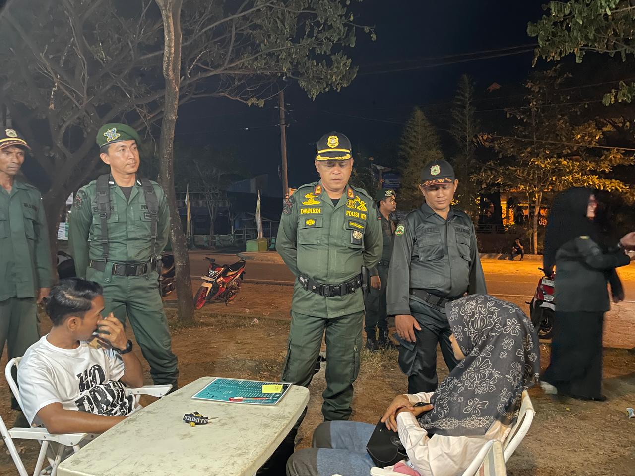 Kasi Penyidik Satpol PP dan WH Aceh Besar Darwadi SAg, memberikan pembinaan kepada pasangan belum menikah yang nongkrong hingga larut malam, di wilayah Aceh Besar, Minggu (12/4/2026) dini hari. FOTO/ WAHYU DESMI