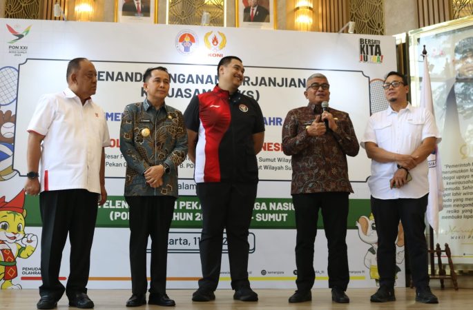 Kabarnanggrpe.com, Jakarta – Demi terselenggarakannya Pekan Olahraga Nasional (PON) XXI tahun 2024, dilakukan penandatanganan perjanjian kerjasama (PKS) antara Kementerian Pemuda dan Olahraga (Kemenpora) dengan Komite Olahraga Nasional Indonesia (KONI), dan Pengurus Besar (PB) PON XXI Aceh – Sumut wilayah Aceh dan Sumatera Utara, di Kemenpora RI, Jakarta Pusat, Kamis (11/7/2024).