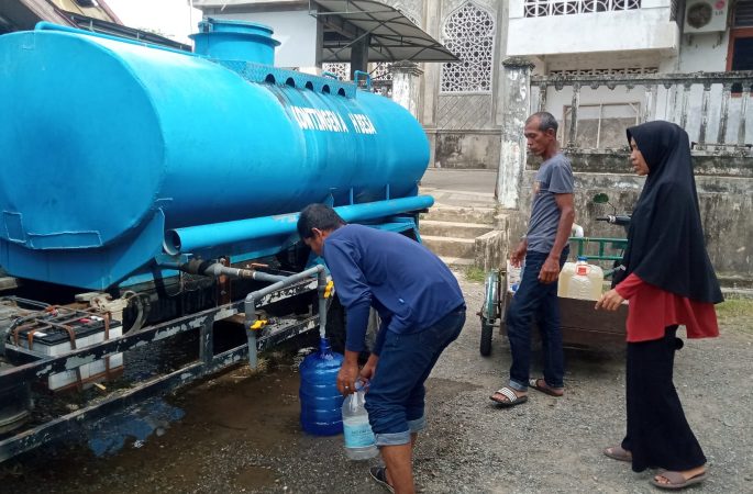 Kabarnanggroe.com, Kota Jantho – Selama dua hari terakhir, Sabtu dan Minggu (12/05/2024) hari ini, Perusahaan Daerah Air Minum (PDAM) Tirta Mountala Kabupaten Aceh Besar menyalurkan sedikitnya 69 ton air bersih untuk beberapa titik di Kecamatan Lhoknga, yang sebagian besar sumurnya kering, selama musim kemarau satu bulan terakhir.