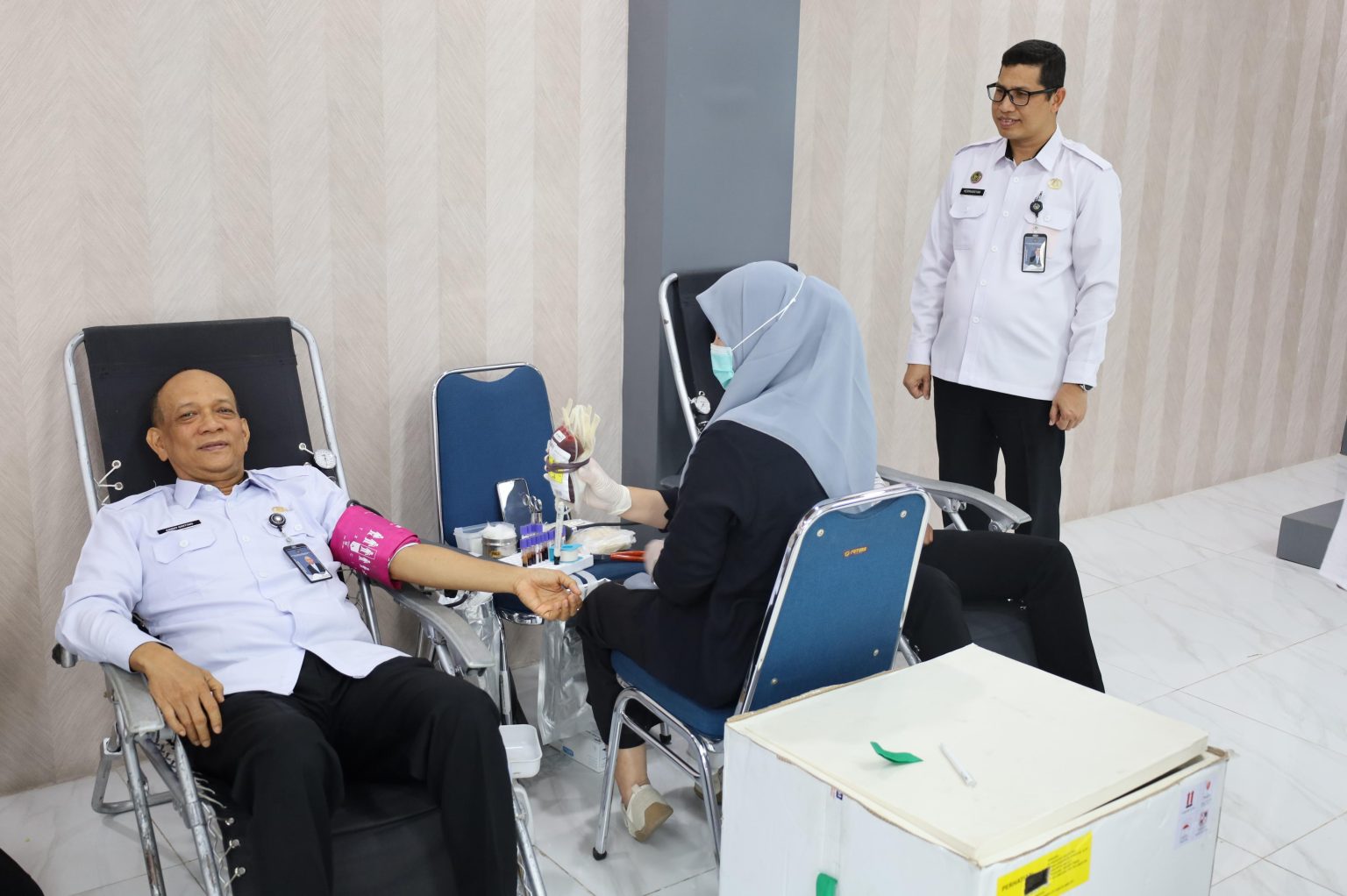 Para peserta mengikuti seluruh tahapan pemeriksaan dan pengambilan darah yang bekerja sama dengan tim medis dari Palang Merah Indonesia (PMI) Kota Banda Aceh.