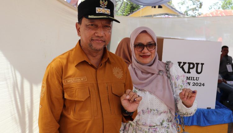 Kabarnanggroe.com, Takengon – Penjabat (Pj) Bupati Aceh Tengah Ir. T. Mirzuan, MT, didampingi istri yang juga Pj Ketua TP PKK Kabupaten Aceh Tengah Ny Novita Mirzuan melukukan pencoblosan Pemilu 2024, Rabu (14/02/2024).