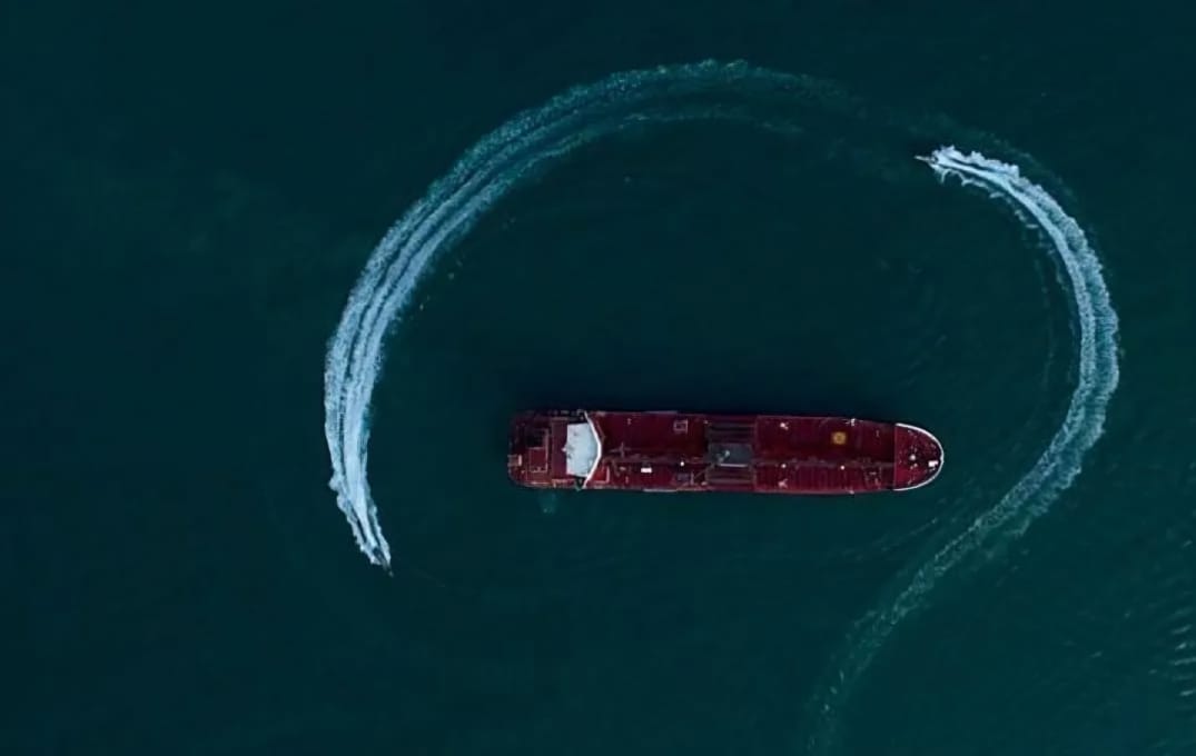 Foto yang dirilis pada 21 Juli 2019 menunjukkan kapal tanker minyak Inggris Stena Impero dikelilingi kapal cepat Korps Garda Revolusi Islam Iran (IRGC) di Selat Hormuz, Iran. FOTO/ANTARA
