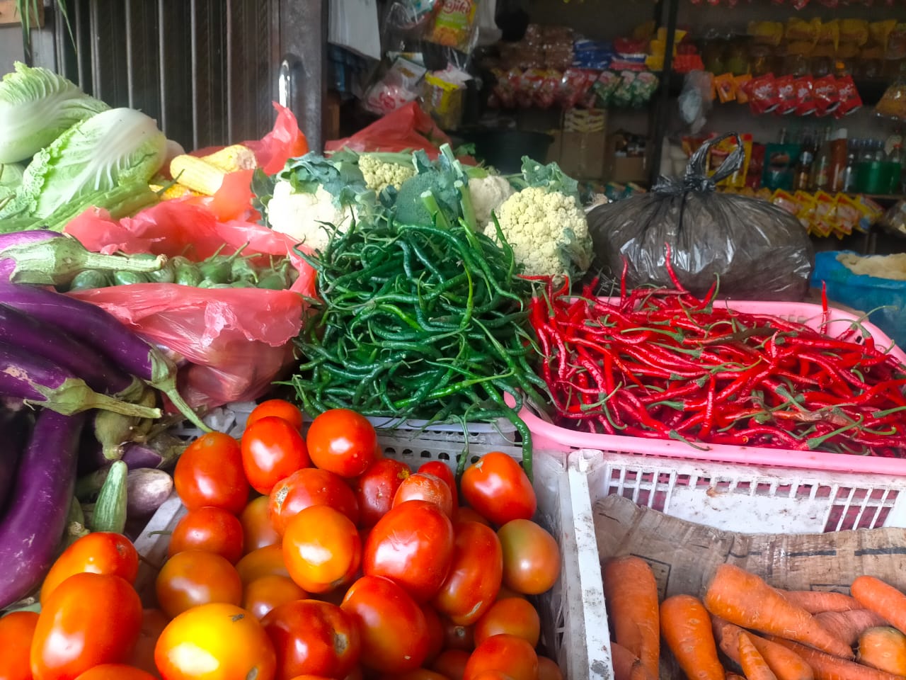 Farida, salah satu pedangan sayur saat di wawancara menyampaikan cabe dan kentang mengalami kenaikan harga.