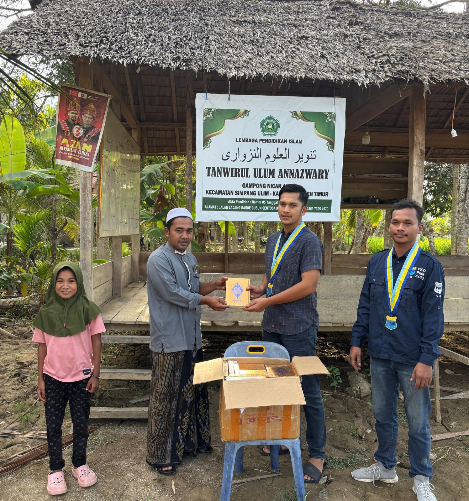 Penyerahan bantuan dilakukan secara simbolis oleh Sekretaris PKC PMII Aceh, Muhammad Rizwan, di Dayah Tanwirul Ulum Annazwary dan salah satu dayah di Desa Bantayan, Kecamatan Simpang Ulim, Aceh Timur, Sabtu (14/3/2026).