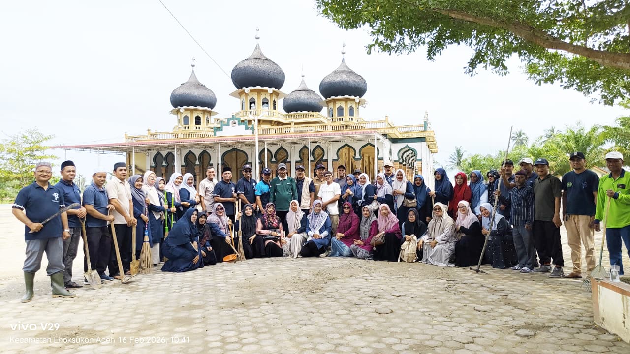 Kabarnanggroe.com, Lhoksukon – Kepala Kantor Kementerian Agama (Kankemenag) Kabupaten Aceh Utara, H. Fadli, S.Ag., M.Si., mengikuti kegiatan Gerakan Bersama (GEBER) Bersih-Bersih Masjid (BBM) dalam rangka menyambut Ramadan 1447 H/2026 M. Kegiatan ini dipusatkan di Masjid Al Ihsan, Matang Ubi, Lhoksukon, Kabupaten Aceh Utara, Senin (16/2/2026).