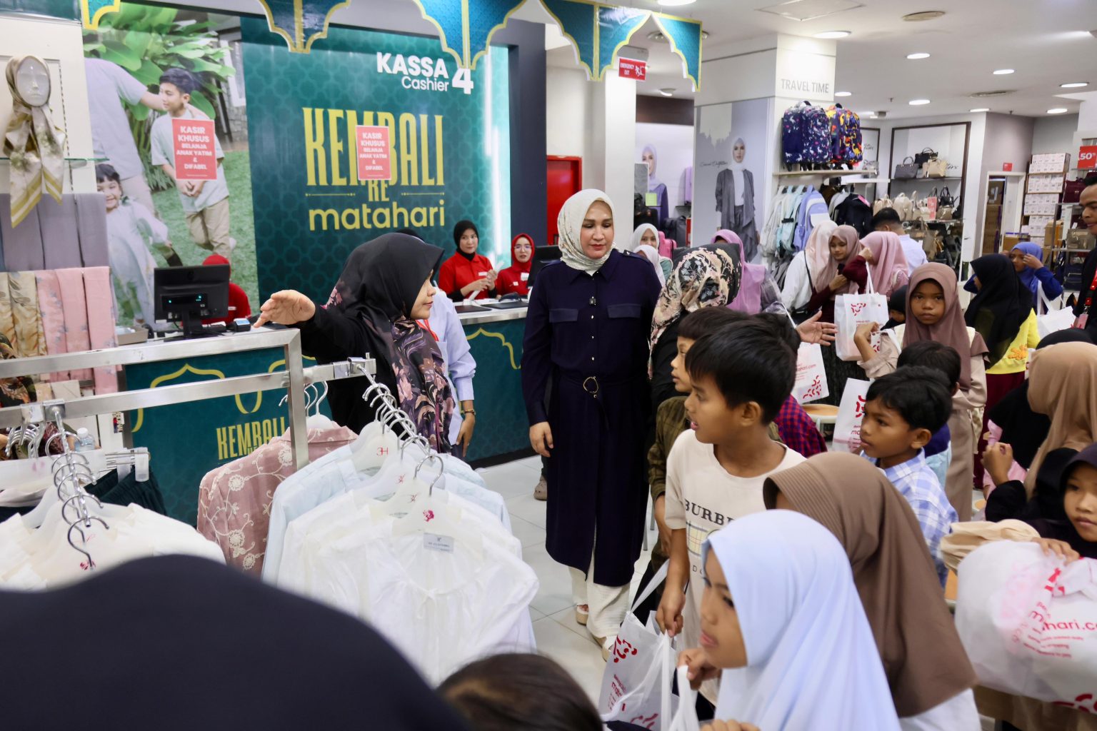 Dengan sabar, Kak Na dan Sunil menemani anak-anak memilih baju dari satu gerai ke gerai lain, memastikan ukurannya pas dan modelnya benar-benar mereka sukai.