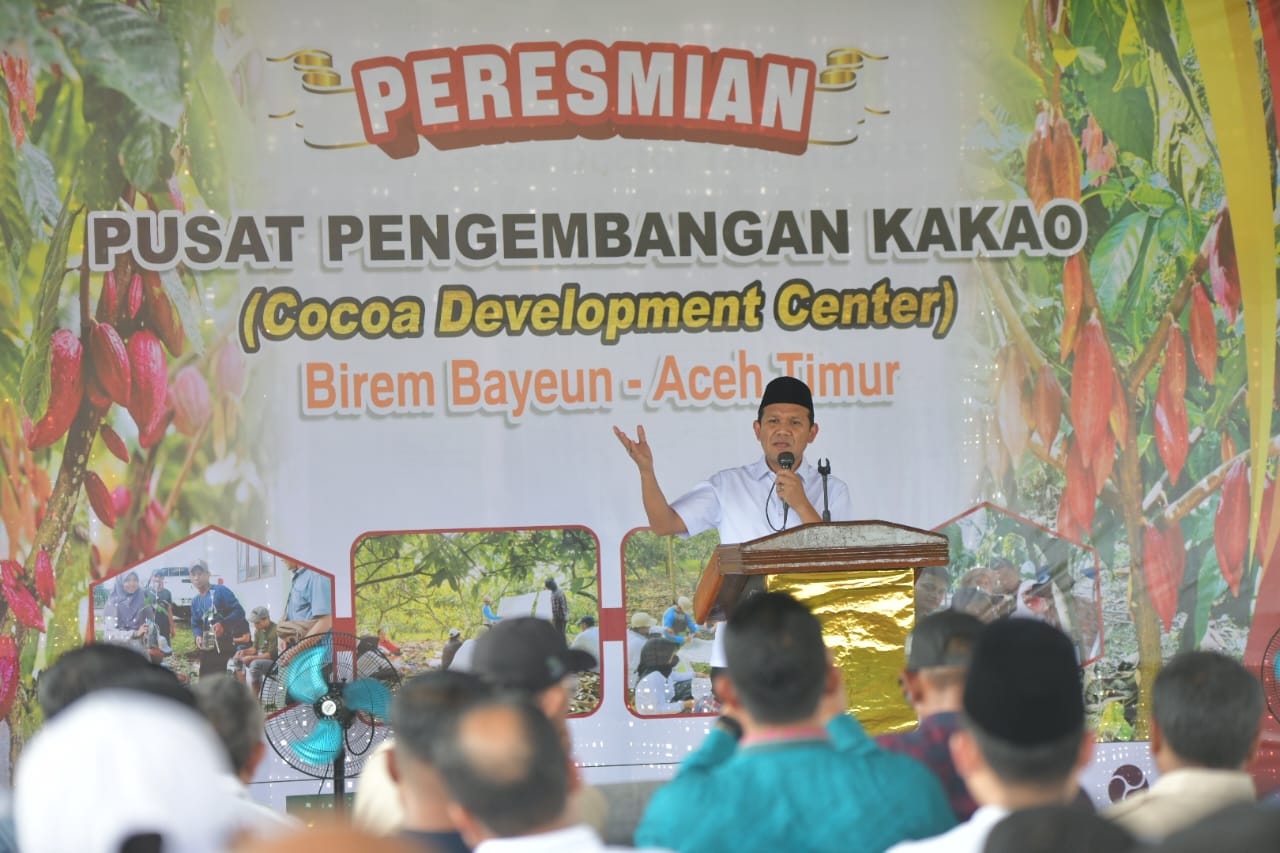 Kabarnanggroe.com, Idi – Wakil Gubernur Aceh, Fadhlullah, meresmikan pusat pelatihan budidaya bibit kakao unggul di lahan seluas 14 hektar di Gampong Aramiyah, Kecamatan Bireum Bayeun, Kabupaten Aceh Timur, Jumat (16/5/2025).