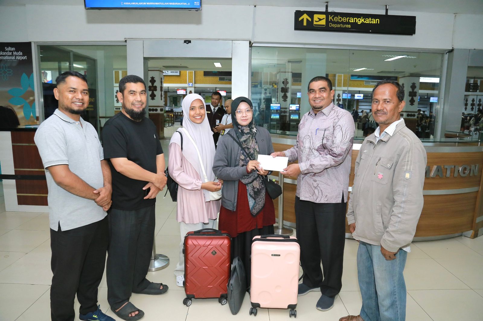 Keberangkatan Andis Febrina juga didampingi oleh Pembimbing Risetnya, Rizka Ayu Putri, S.Si., serta orang tua siswa, menunjukkan dukungan penuh dari pihak madrasah, Kemenag Aceh Besar, dan keluarga.