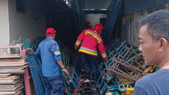 Petugas Damkar Banda Aceh turun langsung memadamkan gudang perlengkapan pelaminan terbakar sekitar pukul 11.00 WIB, Jumat (16/02/2024) FOTO/ MC BANDA ACEH