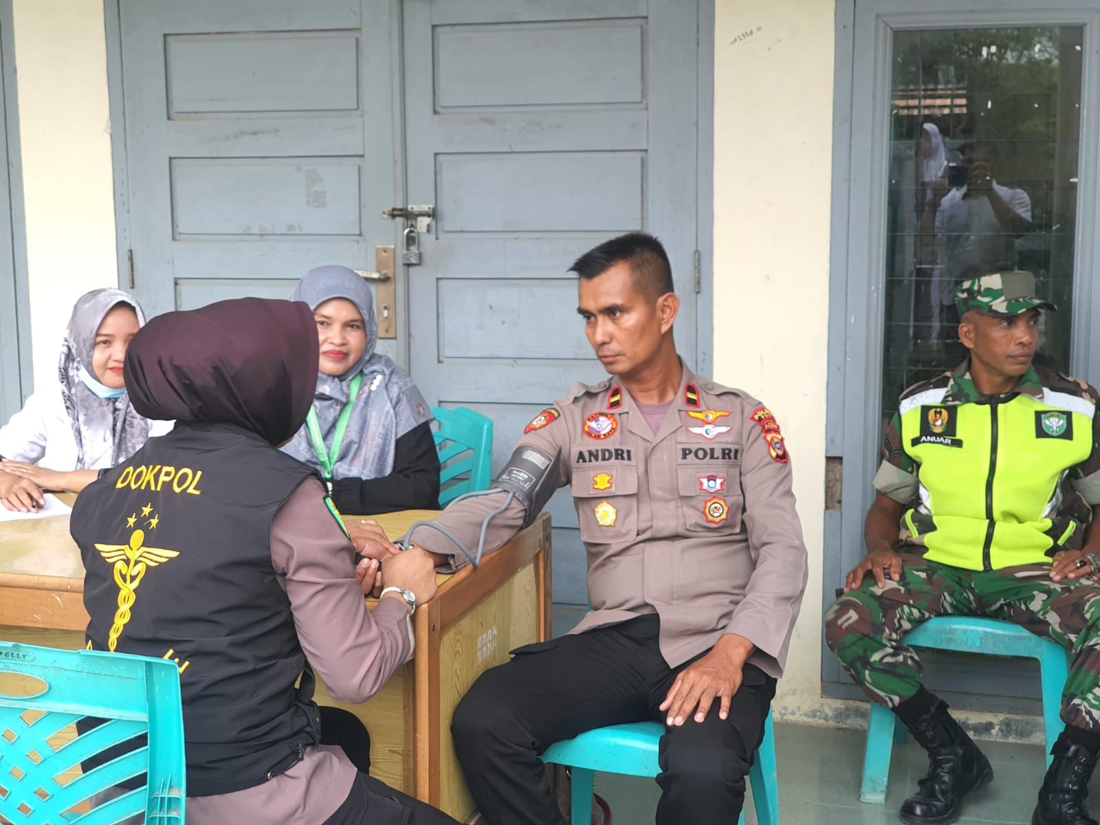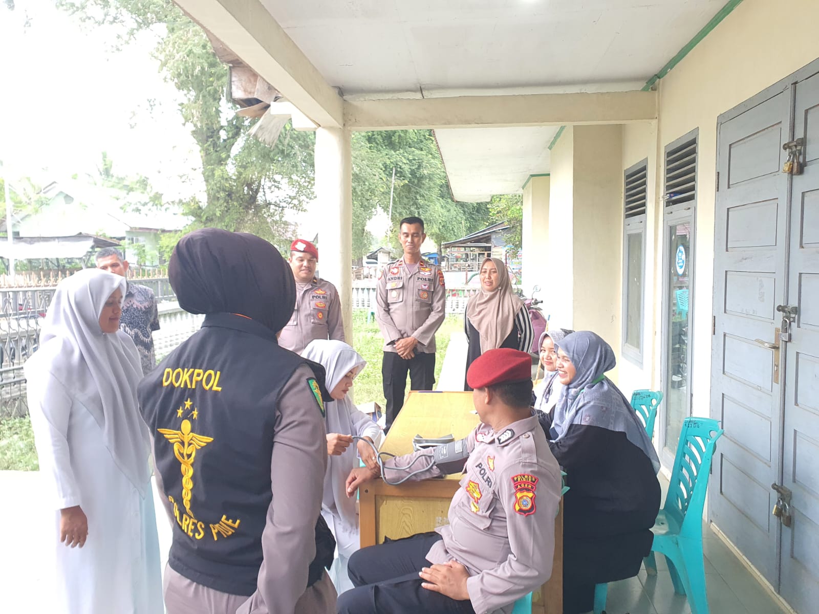 Kabarnanggroe.com, Sigli – Sie Dokkes Polres Pidie bekerja sama dengan Puskesmas melakukan pemeriksaan kesehatan (Rikkes) kepada para petugas yang melaksanakan pengamanan Tempat Pemungutan Suara (TPS) Pemilu di Kantor Panitia Pemilihan Kecamatan (PPK) Padang Tiji, Kabupaten Pidie, hari Minggu, 18 Februari 2024.