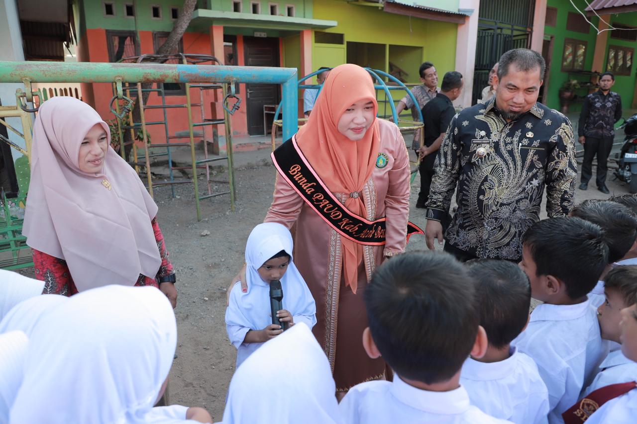 Kunjungan orang nomor satu di Aceh Besar tersebut mendapat sambutan yang meriah, karena terlihat para murid baru itu tampak antusias untuk bisa bersalaman dengan Pj Bupati dan Bunda PAUD Aceh Besar tersebut. Keduanya dengan aura kebapakan dan keibuan yang kental balik menyambut salam hangat anak anak tersebut.