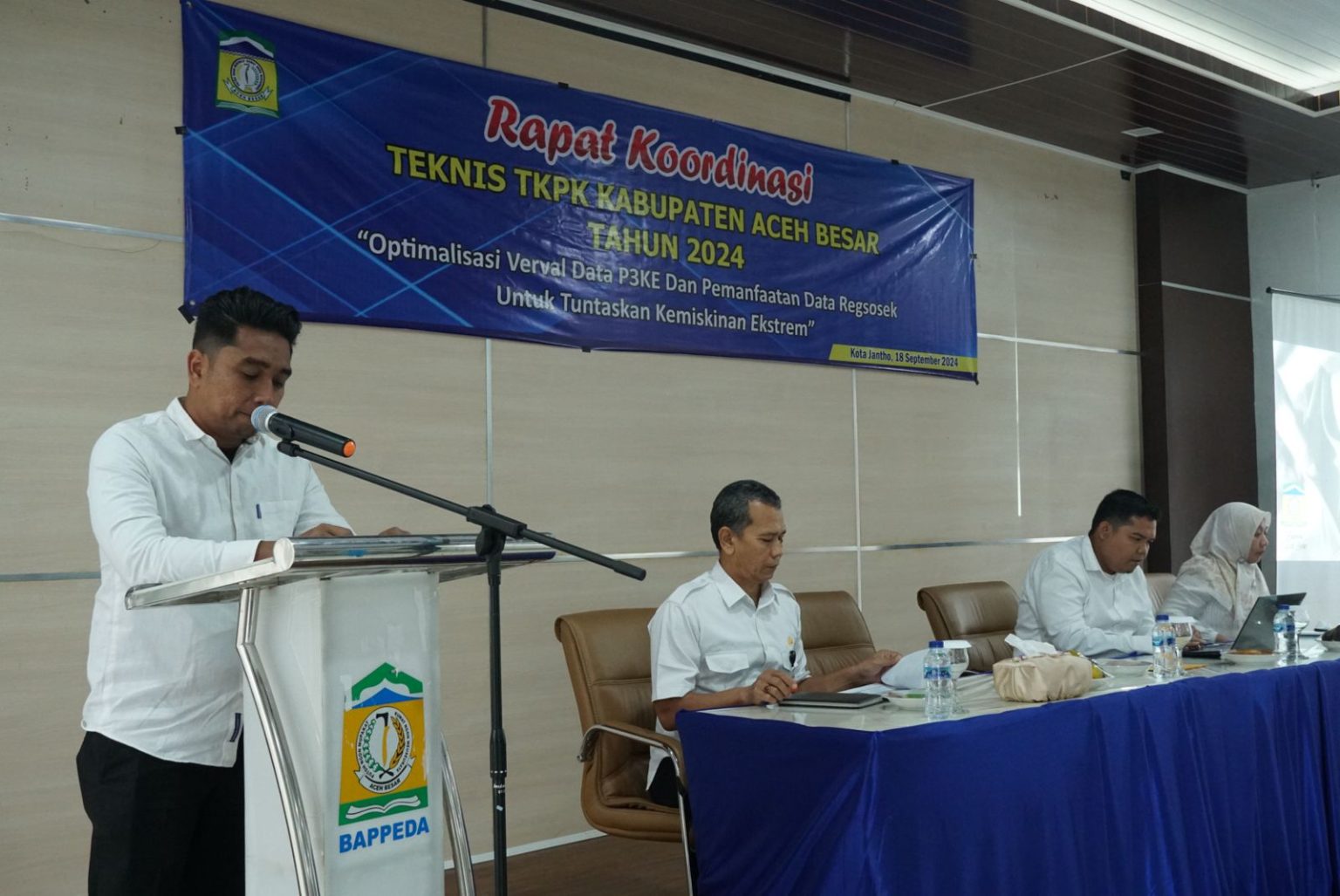 Hal ini disampaikan Penjabat (Pj) Bupati Aceh Besar Muhammad Iswanto SSTP, MM, melalui Pelaksana Tugas (Plt) Kepala Dinas Sosial (Dinsos) Aceh Besar Aulia Rahman, SSTP, MSi saat membuka Rapat Koordinasi (Rakor) Teknis dengan Tim Koordinasi Penanggulangan Kemiskinan (TKPK) Aceh Besar di Aula Lantai 2 Kantor Bappeda Aceh Besar, Kota Jantho, Rabu (18/9/2024).