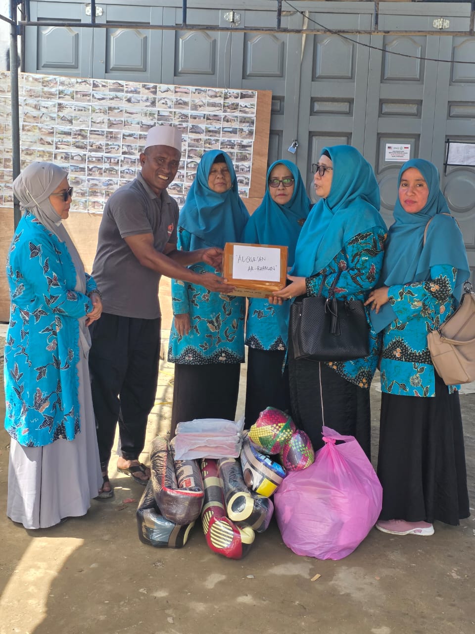 Kedua, Gampong Meunasah Raya, diserahkan kepada Keuchik setempat, Abdul Halim Ishak, S.Pt. Bantuan berupa Al-Qur’an dan tikar untuk kebutuhan Meunasah Raya. Abdul Halim menyampaikan apresiasi mendalam dan menyebutkan solidaritas lintas provinsi ini sangat berarti bagi moril masyarakat.