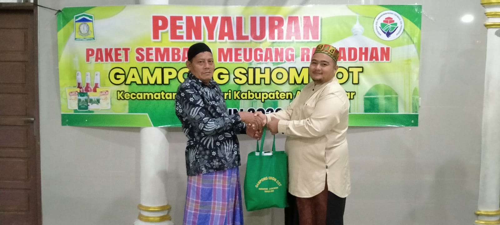Penyaluran bantuan dipimpin langsung oleh Farid Wajidi, S. Kom, selaku Keuchik Gampong Sihom Cot. Paket sembako yang dibagikan berisi 3 sirup, minyak goreng sebanyak 2 liter, serta gula pasir 2 kilogram untuk setiap kepala keluarga.