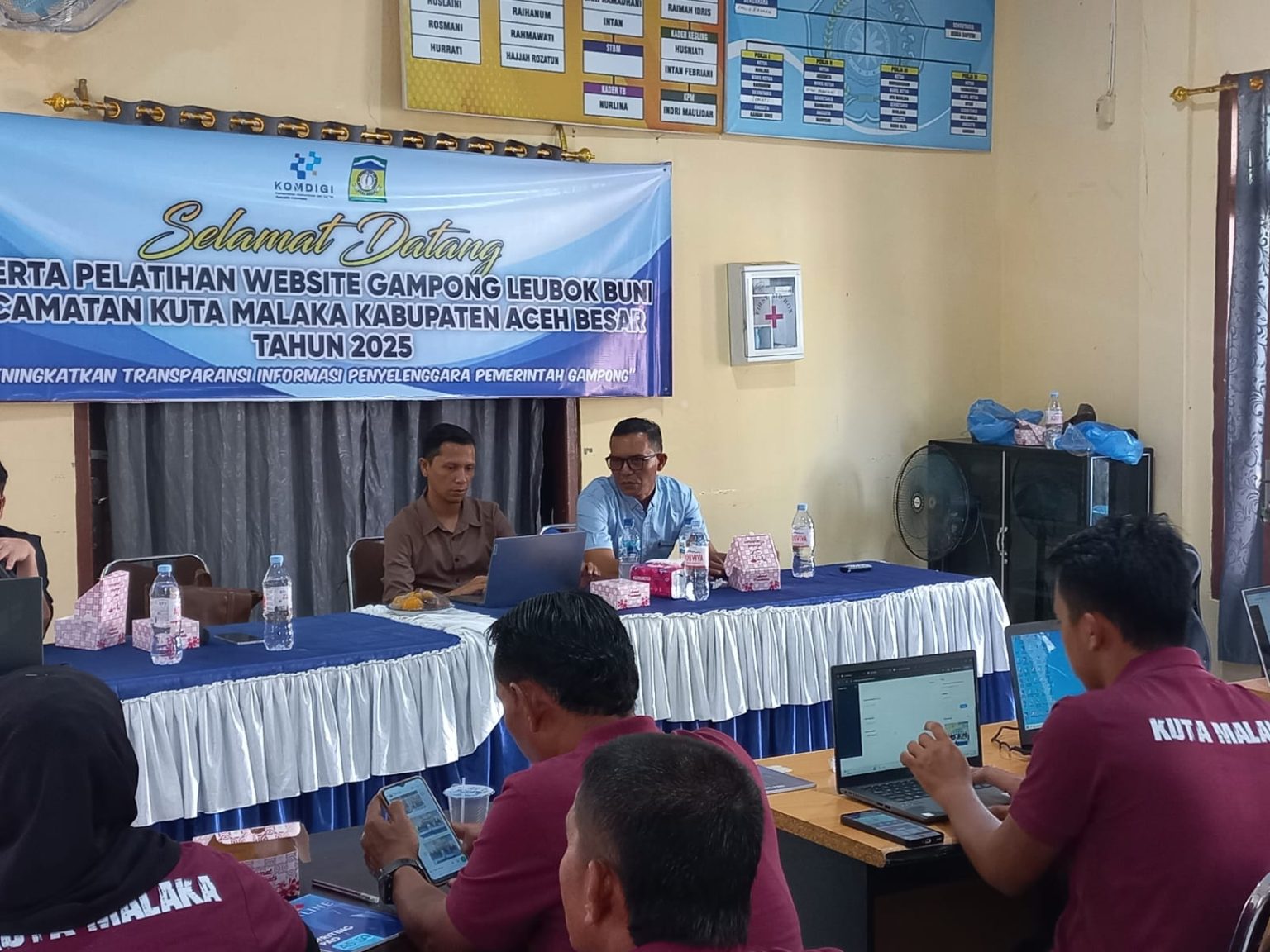 Kabarnanggroe.com, Kota Jantho – Untuk memaksimalkan pemanfaatan portal digital sebagai media penyajian informasi, Diskominfo Aceh Besar memberikan pelatihan pengelolaan website bagi operator gampong di Aula Kantor Camat Kuta Malaka, Jum’at (19/09/2025).