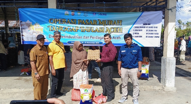 Pj Bupati Aceh Besar Muhammad Iswanto SSTP MM melalui Pelaksana Tugas (Plt) Kepala Diskopukmdag Aceh Besar Trizna Darma ST mengatakan, operasi pasar murah yang digelar hari ini merupakan operasi pasar perdana yang digelar oleh Pemkab Aceh Besar di penghujung tahun 2024, dan ini bekerjasama dengan Disperindag Aceh dan Perum Bulog Kanwil Aceh.