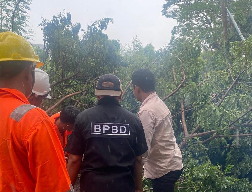 Kepala Badan Penanggulan Bencana Melalui Kabid Logistik dan Kedaruratan Ardi Asyadi mengatakan pohon tumbang terjadi sekitar pukul 12.00 Wib akibat angin kencang disertai hujan.