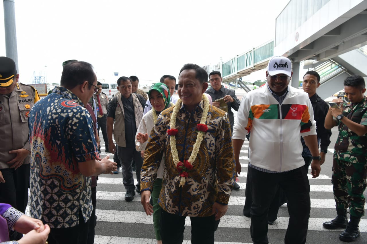 Pj Gubernur Aceh bersama Agus Fathoni Jemput Kedatangan Mendagri di Bandara Kualanamu