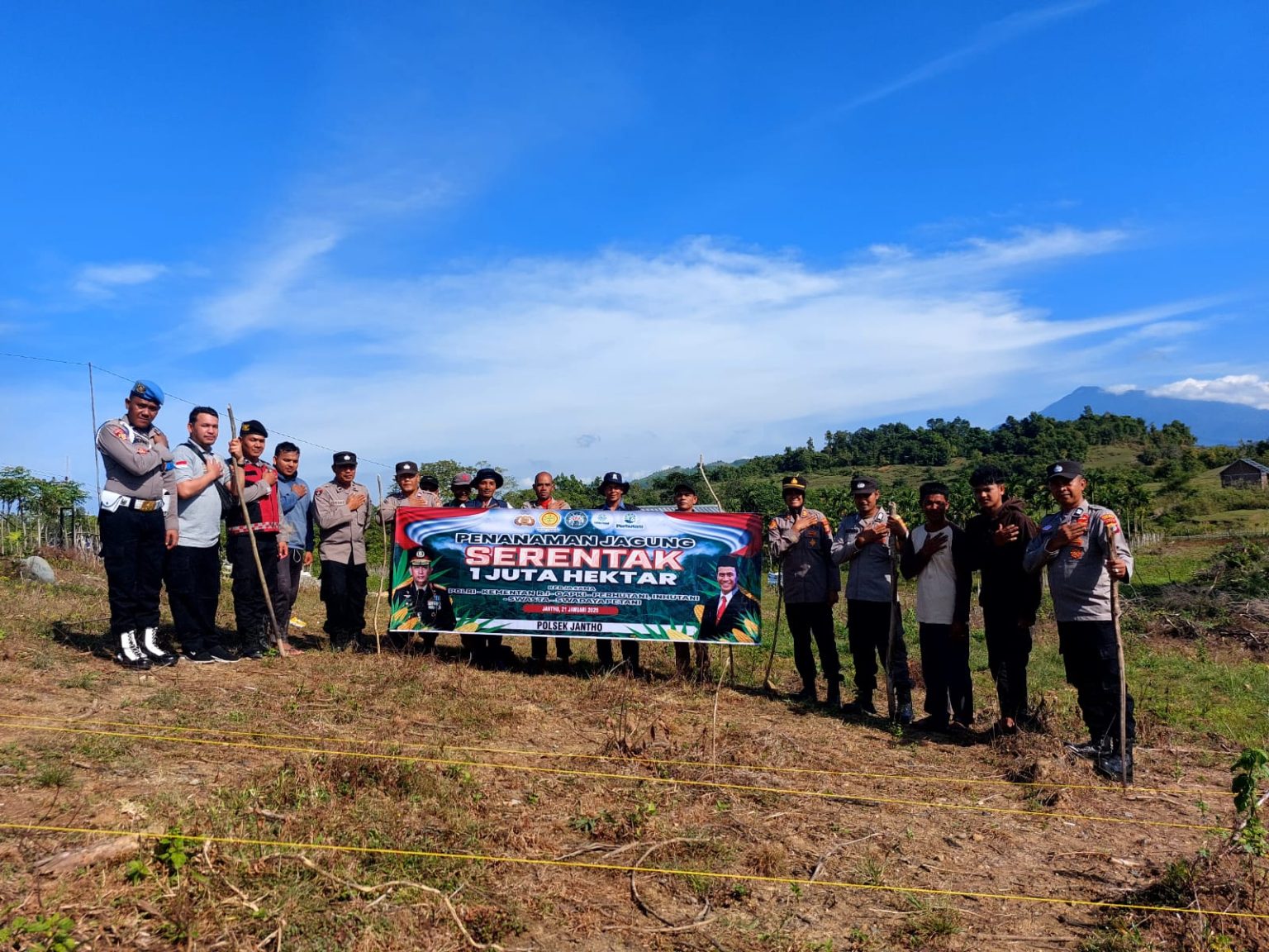 Plt Kapolsek Kota Jantho, AKP Mariah, memimpin langsung kegiatan tersebut yang juga melibatkan unsur Muspika Kecamatan Kota Jantho, tokoh masyarakat, serta petugas PPL. Dalam acara ini, jajaran Polsek bersama peserta melakukan penanaman bibit jagung di area seluas ± 1 hektar sebagai simbol komitmen mendukung swasembada pangan tahun 2025.