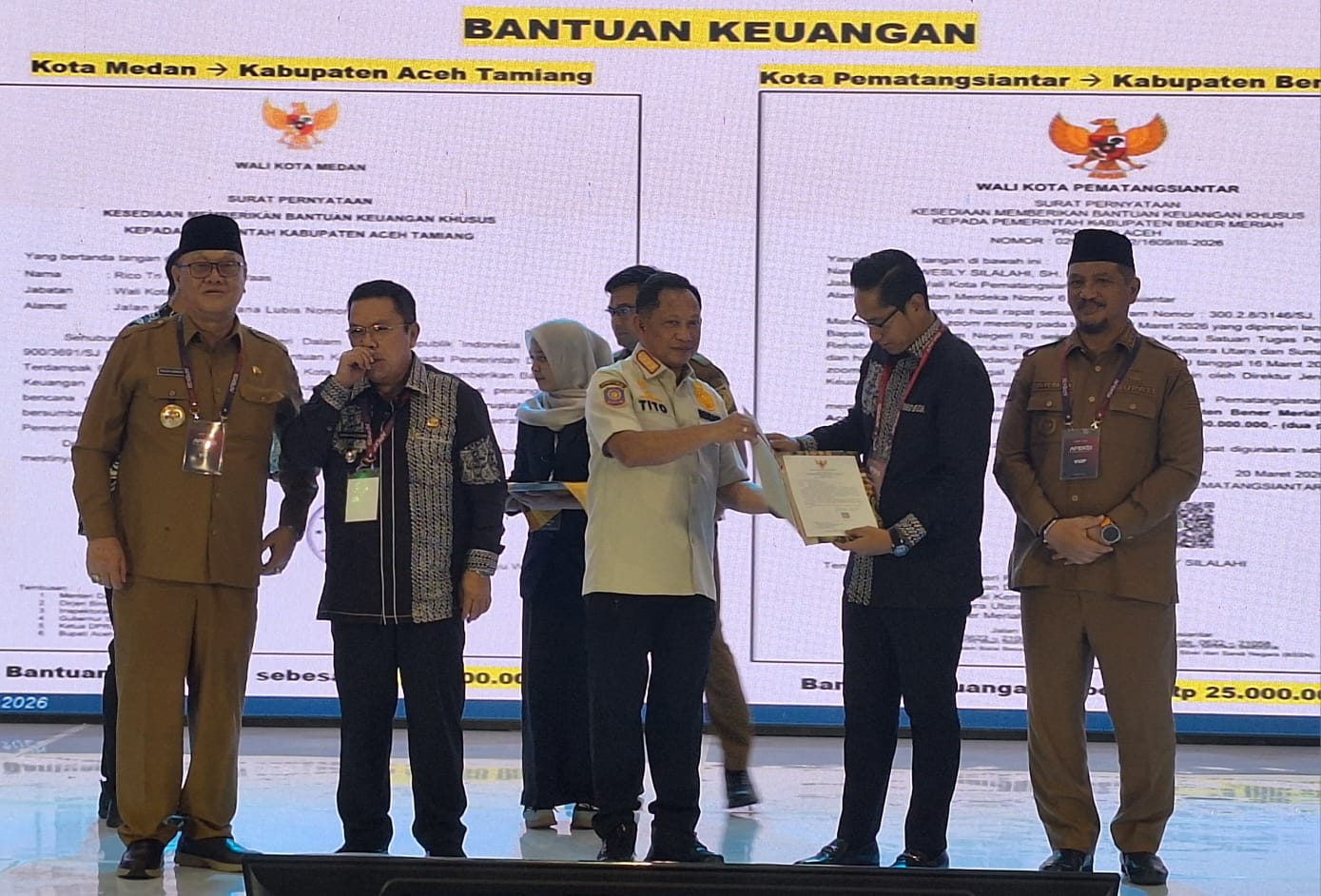 Penyerahan surat dilakukan secara simbolis oleh Wali Kota Medan Rico Waas dan Wali Kota Pematang Siantar Wesly Silalahi, serta disaksikan oleh Menteri Dalam Negeri, Tito Karnavian. Surat tersebut diterima oleh Bupati Aceh Tamiang Armia Pahmi dan Bupati Bener Meriah Tagore Abubakar.