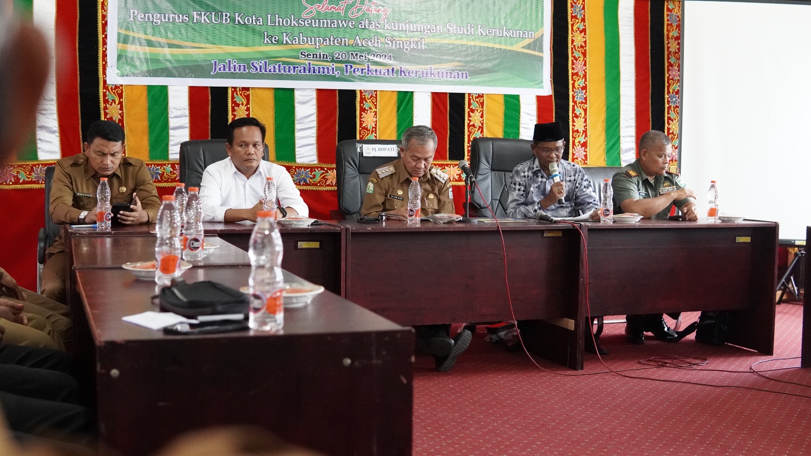 Pertemuan dan silaturahmi digelar di Ooprom Kantor Bupati Aceh Singkil yang dihadiri Bapak Dandim 0109 Aceh Singkil, Bapak Kapolres Aceh Singkil, Bapak PJ Sekda Aceh Singkil, Kepala Kemenag Aceh Singkil, Kepala Kesbangpol Aceh Singkil, Ketua FKUB Aceh Singkil, dan seluruh pengurus FKUB Aceh Singkil.