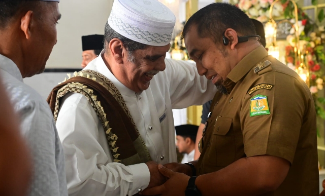 Pj Bupati Aceh Besar Muhammad Iswanto hadiri undangan Maulid di Dayah Al-Ikhlas Abu Ishaq, di Komplek Masjid Lamsayuen, Gampong Ajee, Kecamatan Ingin Jaya, Aceh Besar, Kamis (21/11/2024). FOTO/MAMAD