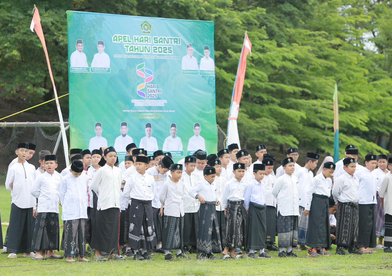 Apel Hari Santri diikuti para kepala seksi, penyelenggara, kepala madrasah, kepala Kantor Urusan Agama, pegawai Kantor Kemeng Aceh Besar serta seluruh santri Pesantren Tgk Chiek Oemar Diyan.