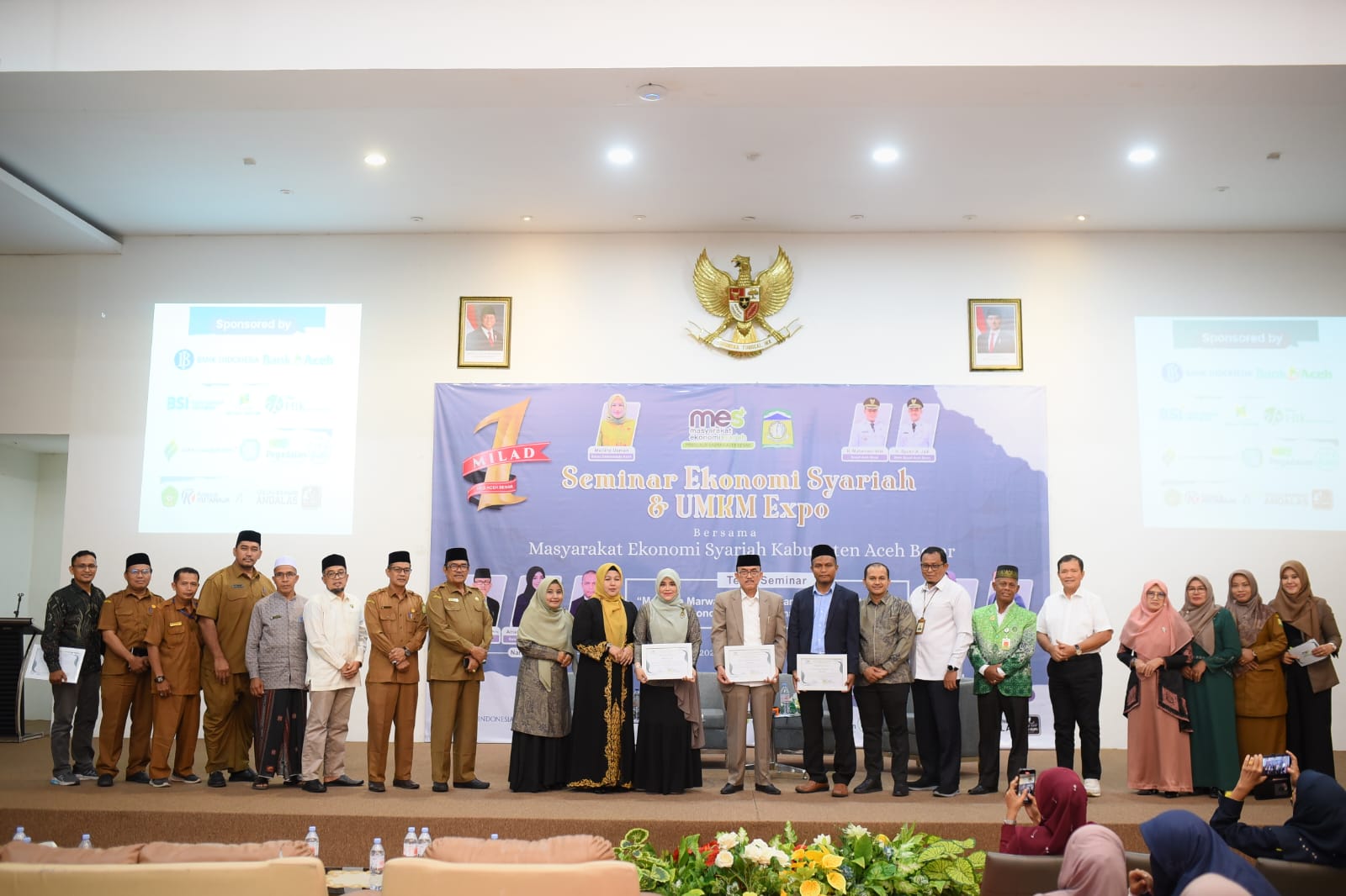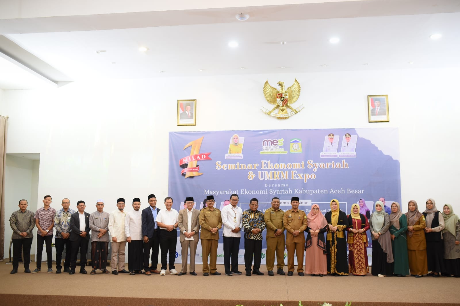 Kegiatan ini juga menjadi momentum untuk memperingati 1 tahun berdirinya MES Aceh Besar. Dalam sambutannya, Sekretaris Umum MES Aceh Besar, Zakiah Zainun, Lc., M.Ag., menyampaikan: “MES Aceh Besar telah aktif membangun literasi dan mendorong gerakan ekonomi syariah. Tidak hanya di tingkat kabupaten, tetapi juga telah berperan aktif dalam memberdayakan produk UMKM lokal, termasuk melalui partisipasi pada Makkah Halal Forum di Arab Saudi pada Februari 2025 lalu.”